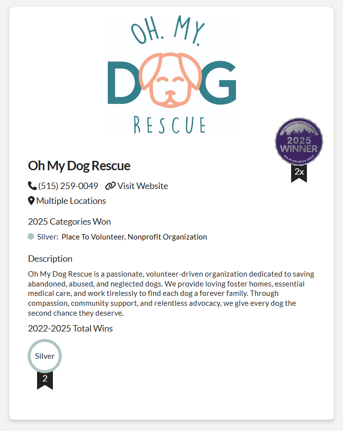 Oh My Dog Rescue Named Iowa’s 2024 Award Winner of Miranda Lambert’s Mutts Across America Grant