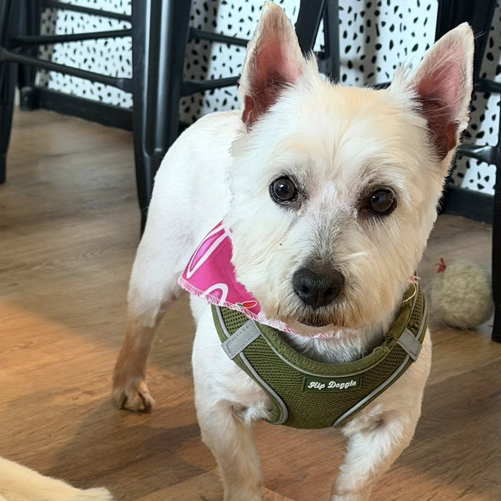Loves: The ladies- Slow intros to male humans. Loves other dogs.